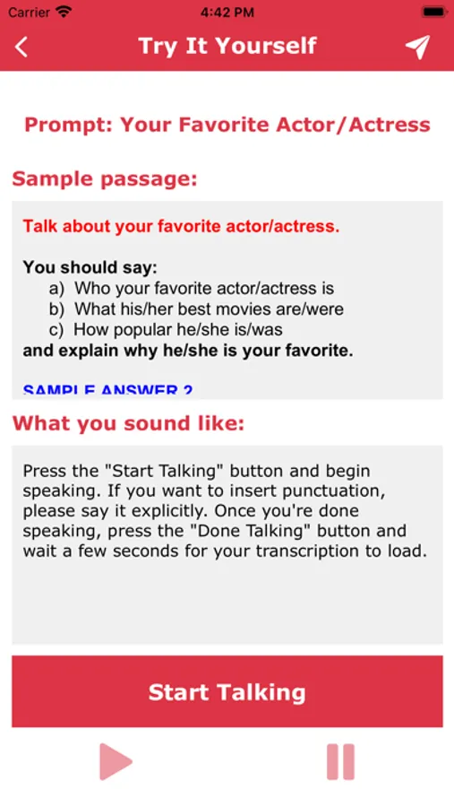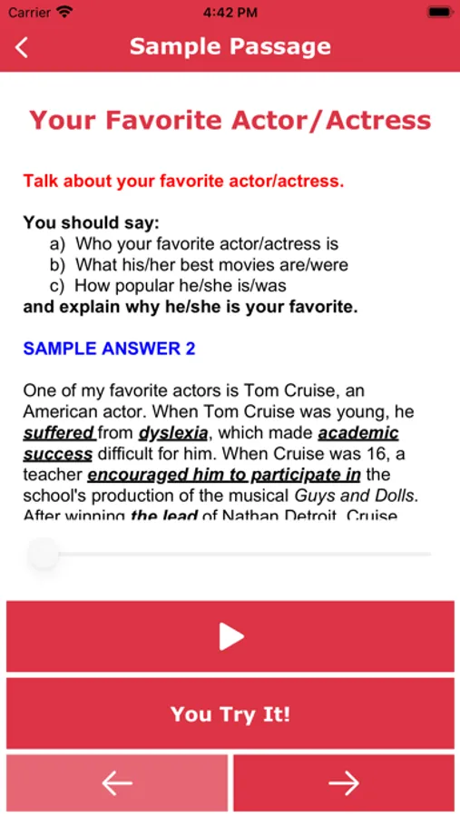 - Authentic sample responses (both text and audio) with great focus on Lexical Resource, Grammatical Range, Fluency, Coherence, Pronunciation, and Accuracy.