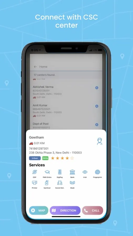 CSC Locator helps the user to obtain driving directions to the CSC center’s by providing their starting and ending locations. By clicking on particular CSC center the user can get the maps, directions in just one click and also the user can make a call to any of the CSC centre’s by clicking on the call icon.