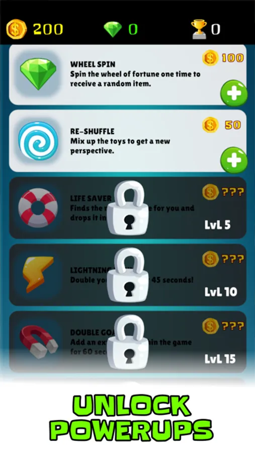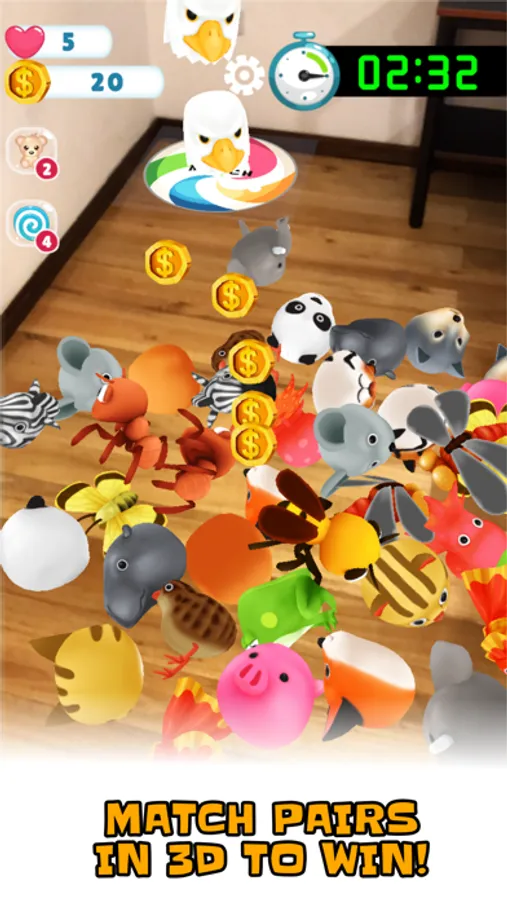 Many cute and fun items, such as adorable animals, funky fruit and crazy cars. Match each pair of 3D objects before the time runs out to win the round. After each round you can buy power ups and enable special skills to help you win the next level.