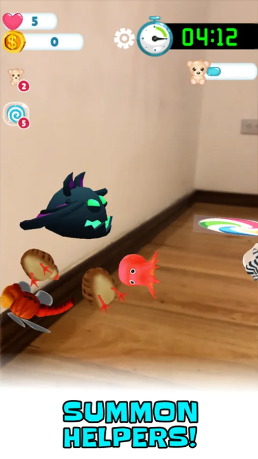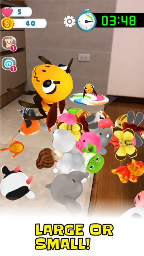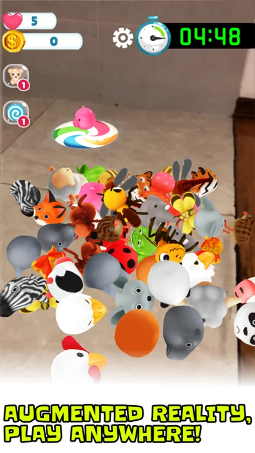 The augmented reality experience adds a whole new dimension to the game. Play anywhere where there is a flat surface and move around to get a closer look at items!