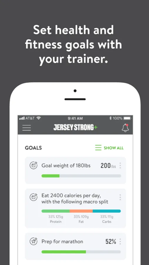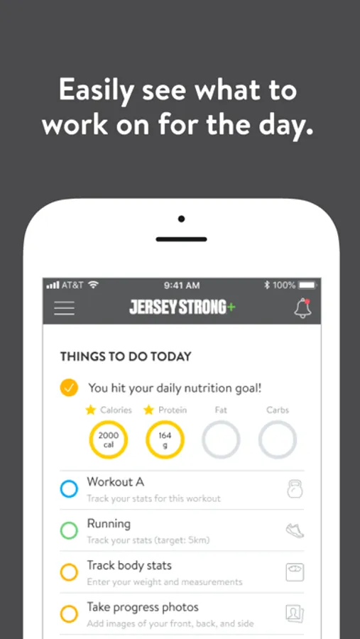 With the Jersey Strong+ App, you can access customized fitness plans, track your workouts and meals, measure your results, and get in great shape -- and even get help from a fitness coach whenever you want it.