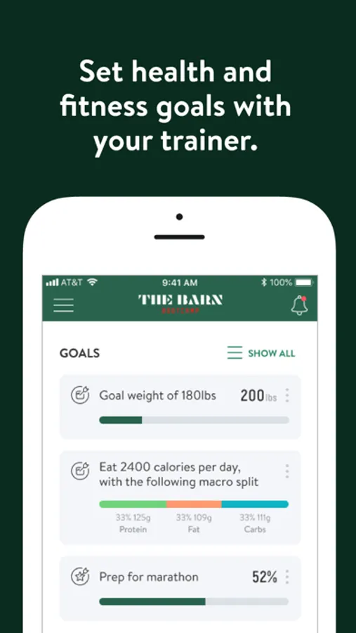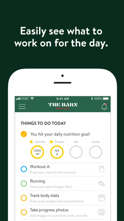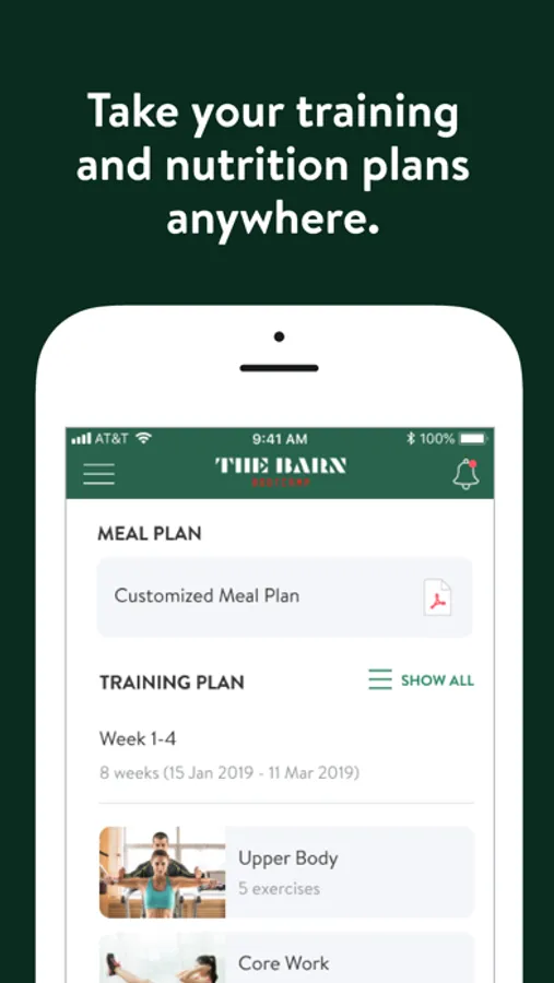 With The Barn Bootcamp App, you can start tracking your workouts and meals, measuring results, and achieving your fitness goals, all with the help of our personal trainers.