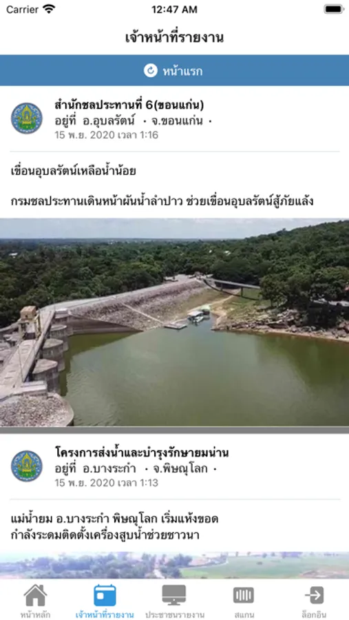 - การรายงานจากเจ้าหน้าที่ถึงสถานการณ์ที่เกิดขึ้นในพื้นที่ต่างๆ ทั่วประเทศ รวมทั้งการแก้ไขและบรรเทาปัญหาต่างๆ
