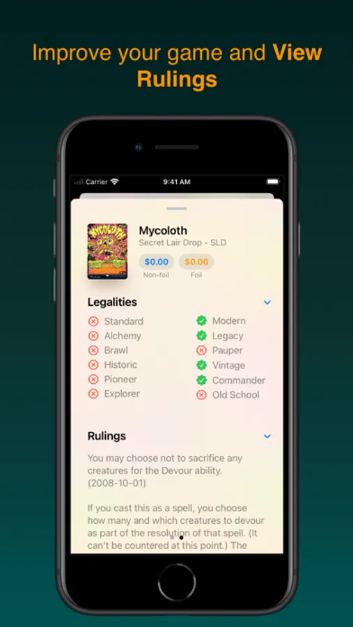 - View any card info, related cards, printings, legalities, and rulings. You’ll discover new combos and gain insight into your cards.