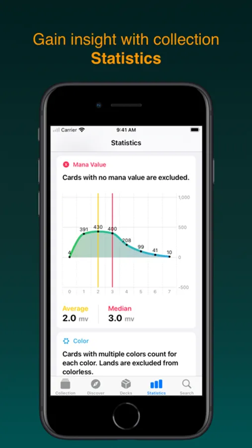 - Your collection is automatically sorted by color, type, MV, rarity, set, format, and more.