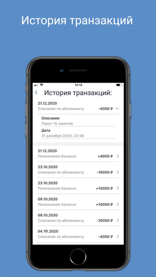 - реестр всех своих оплат, возвратов, текущий баланс