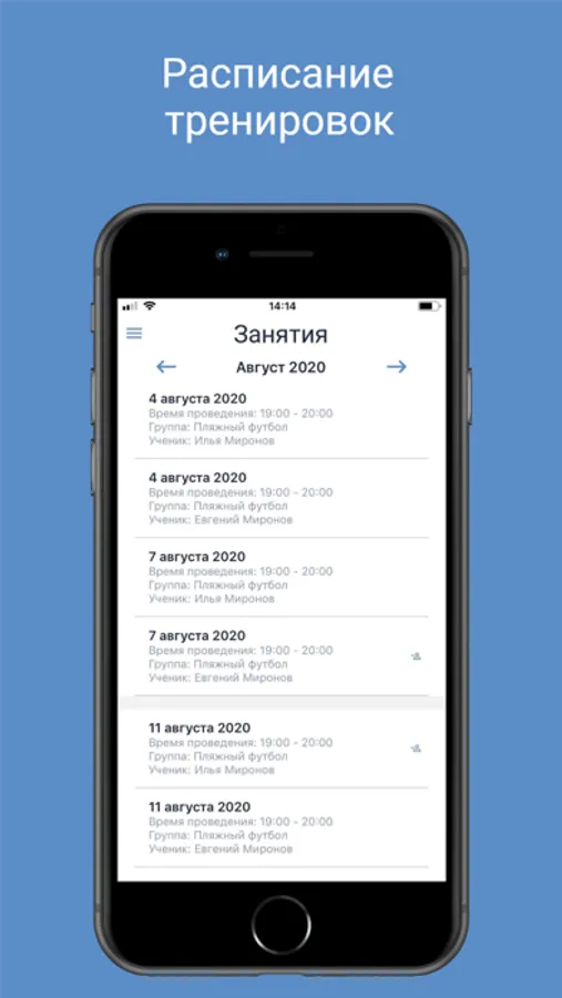 - история посещения занятий