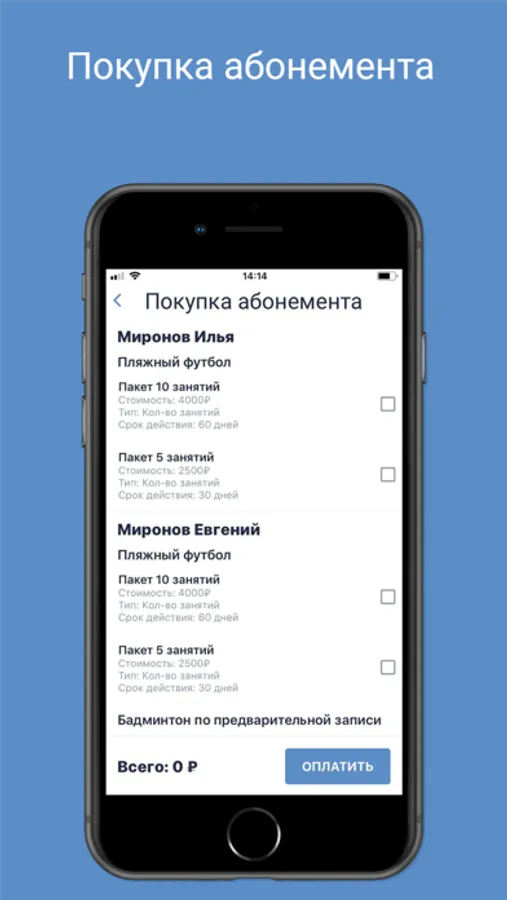 - И самое важное! клиент в приложении сможет выбрать нужный абонемент и перейти к оплате.