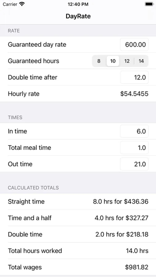 Ever wonder whether you were paid the right amount for your day's work? Use DayRate to make the math easy!