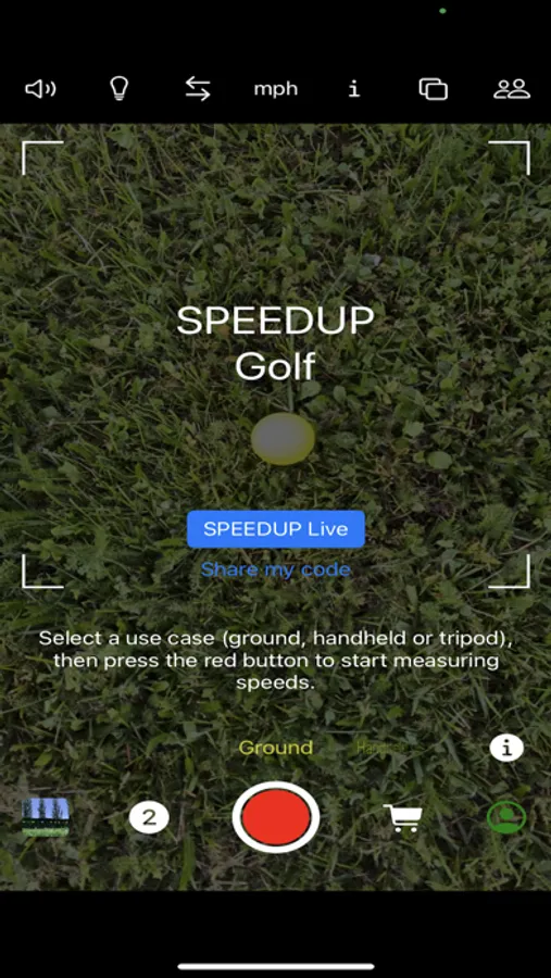 The SPEEDUP Live technology may be used to broadcast your speed measurements in real time to multiple devices (TV, laptop, tablet, smartphone, etc.). After hitting the ball, the speed appears instantaneously on the SPEEDUP Golf Live web interface as well as the SPEEDUP Live dashboard located within the SPEEDUP Golf app. Only users who have received your SPEEDUP Live code are entitled to watch your speed. A link to your SPEEDUP Live code may be found within the SPEEDUP Golf app.