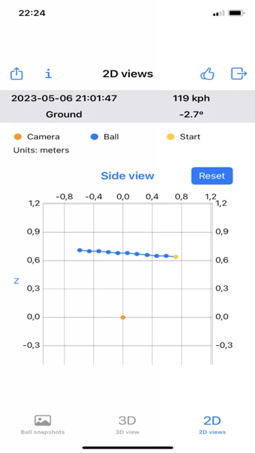 In the 'My Speedup' section of the SPEEDUP Live web interface, the trajectories of the balls may also be visualized in three dimensions. Besides its fun aspect, a 3D visualization may also bring valuable information about the quality of your swing.