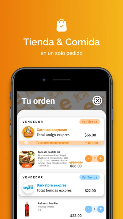 Puedes pedir productos tienda y comida sin ningún incremento en el costo de envió.