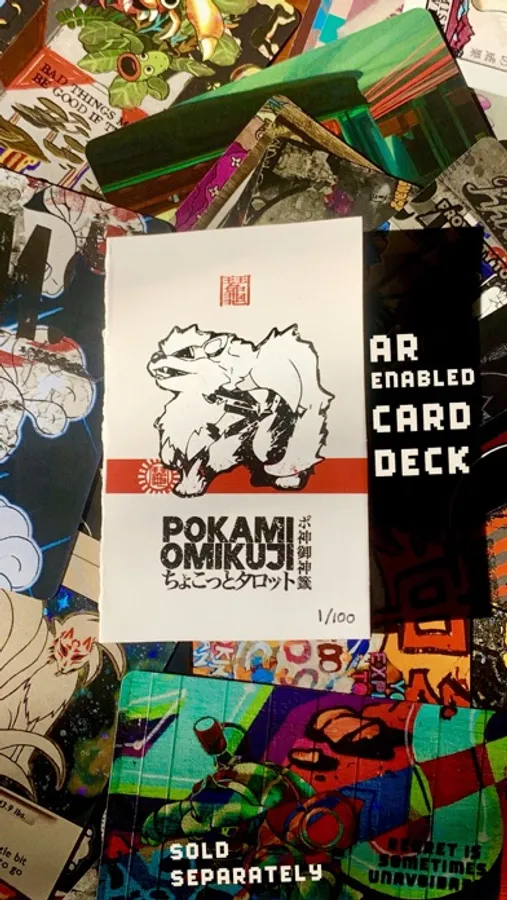 Pokami are the pocket kami (protective gods) that are based on omikujis (blessings or curses) you would receive from a Shinto shrine. With the Pokami Omikuji card deck, this augmented reality app can reveal the meaning behind each card. Divine anything to anybody with these 52 unique life enhancing talismans. When life deals you a bad hand, buy a new deck.