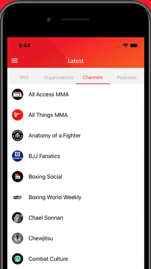 2) Latest Section - All the leading MMA news sources, organisations, podcasts and Martial Arts channel feeds.