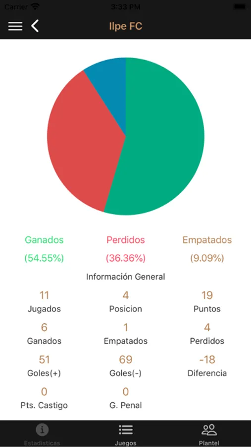 - Estadísticas del equipo.