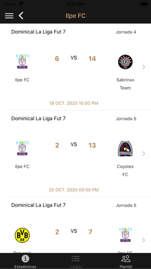 Consulta el rol de juegos de la semana, resultados, estadísticas y mucho más!