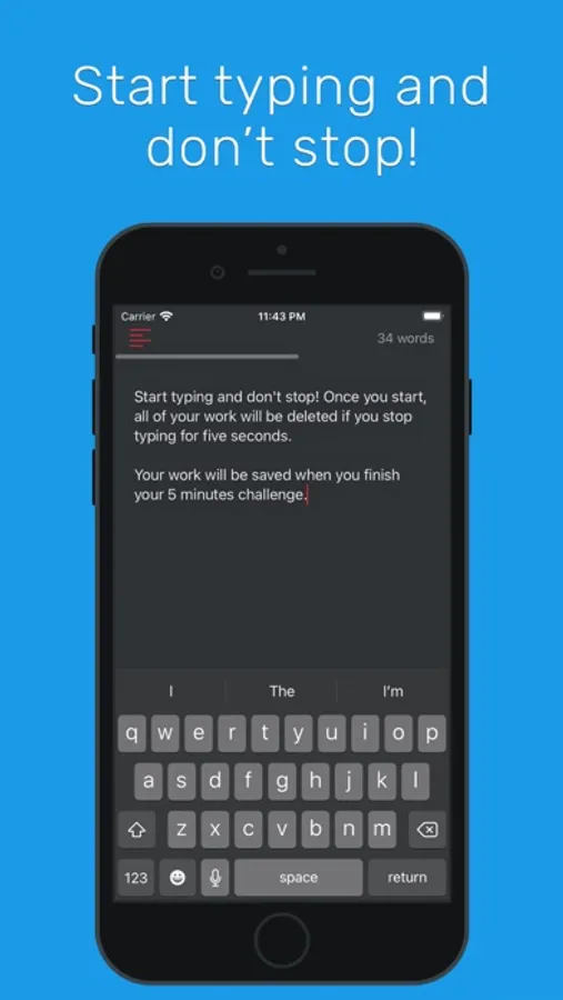 Start typing and don't stop! Once you start, all of your work will be deleted if you stop typing for five seconds. Your work will be saved only when you finish your challenge.