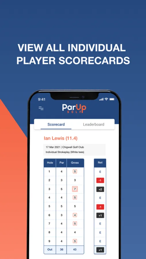 View the individual scorecards for any player taking part in the event. Accessible via the leaderboard, track a player’s progress and see their gross score per hole, as well as either the stableford points or net score for strokeplay.