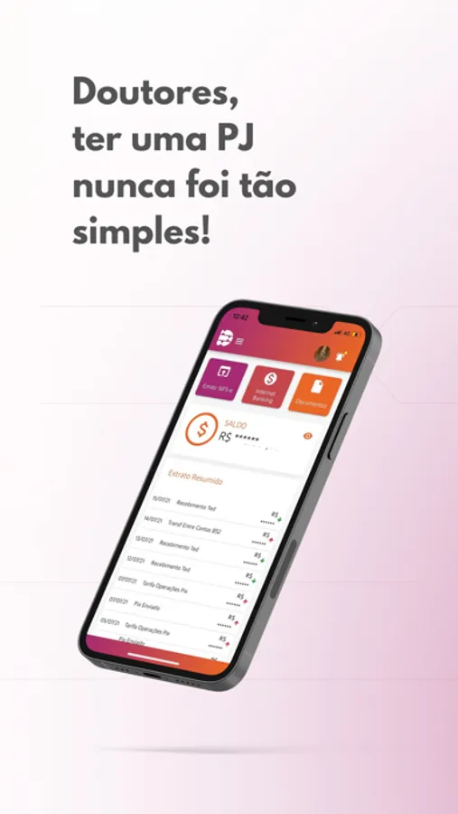 Aqui você tem acesso a todos os serviços da sua Conta Corrente PJ Domus by BS2 em ambiente seguro com todas as transações controladas por Token! Faça TED, Pix, Pagamentos, crie links de pagamento, tudo pelo seu App para fazer a sua PJ trabalhar pra você, afinal, todo médico é também um empreendedor!