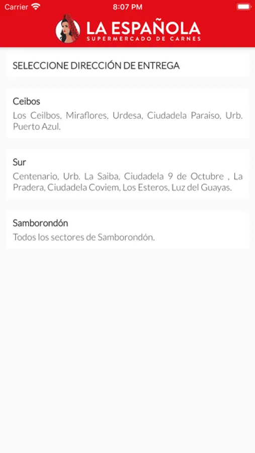 App que permite realizar pedidos a supermercados la española para su entrega y pago en domicilio, o comprar directamente utilizando sus tarjetas de débito o crédito. Se hacen entregas en todos los sectores de Samborondón. Además hay cobertura en Los Ceibos, Urdesa, Miraflores, Puerto Azul, Ciudadela Paraíso, Centenario, la saiba, Ciudadela 9 de octubre, la pradera, la coviem, los esteros, luz del guayas, huancavilca, las acacias. Para realizar sus compras, debe registrarse con un correo electrónico válido y una contraseña. Mediante la App, puede elegir su dirección de entrega utilizando el mapa y proporcionando los datos de contacto de forma correcta. La aplicación cuenta con barra de búsqueda y clasificación por categorías para facilitar la localización de los productos.