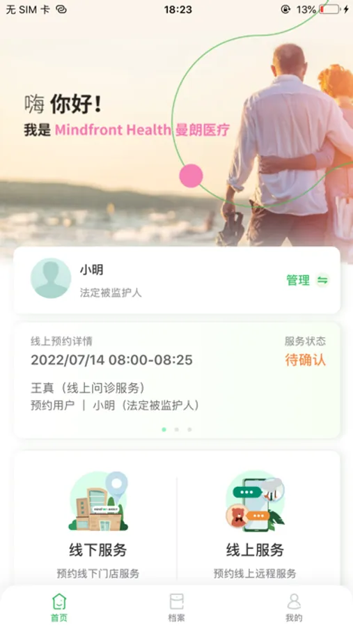 曼朗互联网医院借助线上+线下的服务模式,在儿童、青少年、成人的轻中度精神心理疾病领域全面开展多学科诊疗整合服务。通过医生端APP和患者端APP提供询证科普、在线问诊/咨询(一对一服务)、在线智能测评、患者在线管理、在线处方+药房服务、在线随访、AI在线治疗等服务。