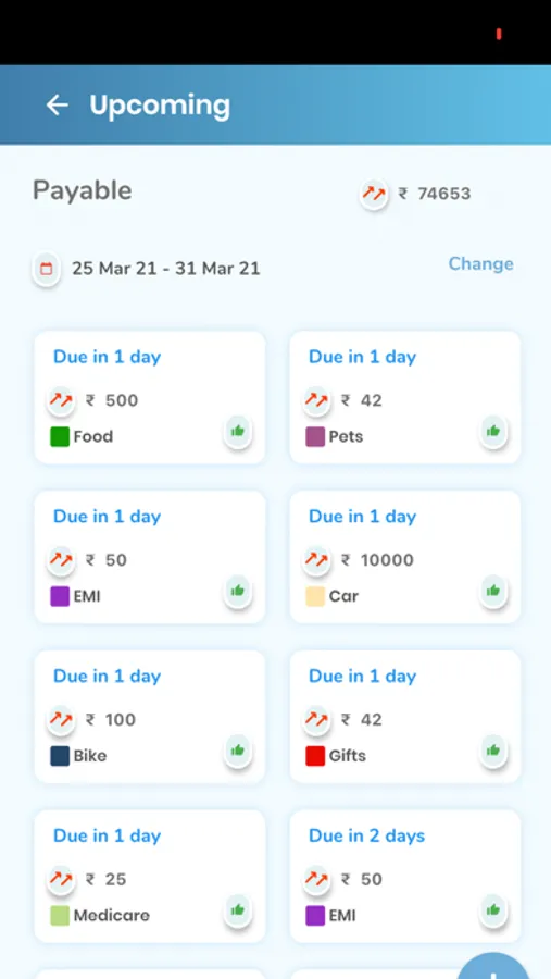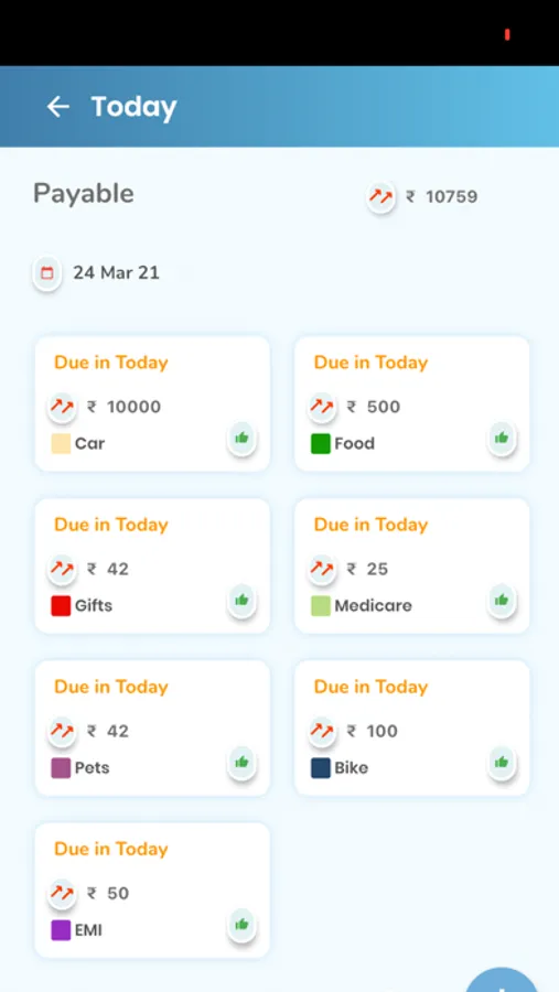 * Categorization - Clean categorization of bills: Upcoming, Today, Unpaid,