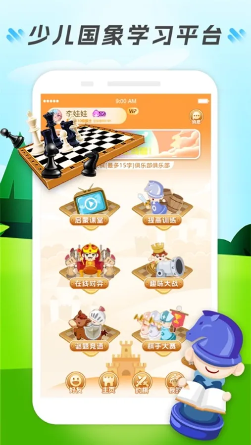 APP遵循4-12岁儿童认知和学习特点,从启蒙到实战,让孩子学习国际象棋不仅有趣好玩,而且非常实用。加强锻炼少儿逻辑思维、提高专注力和创造力。应用涵盖了入门动画课件、智能训练、趣味竞技、直播课堂、课后练习、对弈指导、复盘评分、国象大赛、电子奖状为一体的内容,刚对国象感兴趣的儿童也可以轻松入门,快来加入吧。