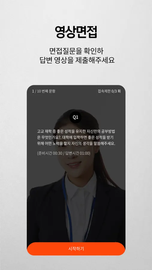 - 제시된 질문을 확인하고 답변 영상 촬영을 시작해주세요.