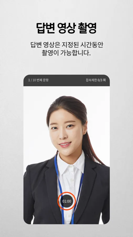 - 지정된 시간이 종료되면 답변 영상 촬영이 종료되고 다음 질문으로 이동합니다.