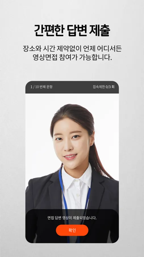 - 제시된 질문을 잘 보고 지정된 시간 내에 답변 영상 촬영을 완료해주세요.