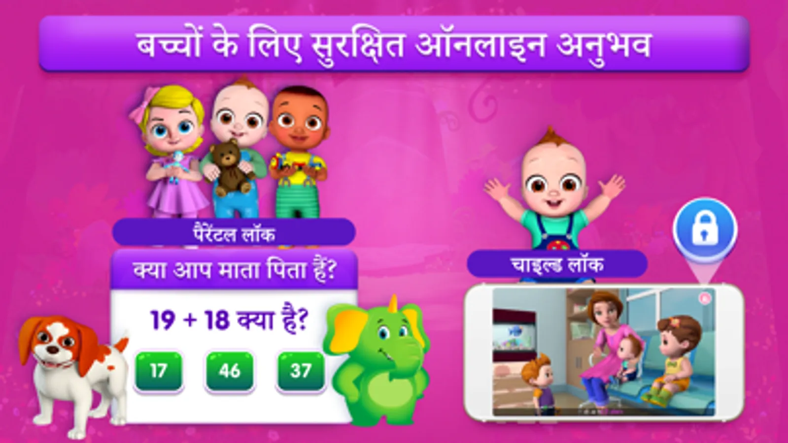 चूचू टीवी के वीडियो अलग-अलग उम्र के बच्चों के लिए अच्छी हैं: जैसे टॉडलर (0-3 साल के) और प्रीस्कूलर (3-5 साले) वाले बच्चों। चूचू टीवी हिंदी ऐप माता-पिता को सभी उम्र के बच्चों के लिए एक सुरक्षित चीजें देखने के अनुभव में सक्षम बनाता है। फीचर्स में पेरेंटल कंट्रोल और चाइल्ड लॉक शामिल हैं। चूचू टीवी - हिंदी ऐप कभी भी कोई पर्सनल डेटा नहीं लेता है क्योंकि हम बच्चों की ऑनलाइन प्राइवेसी और सेफ्टी का ध्यान रखते है।