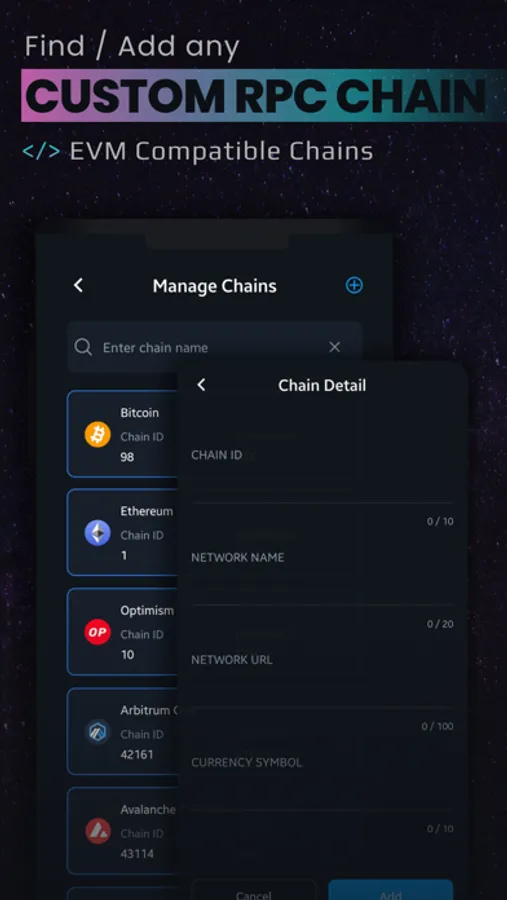 KEYRING PRO now provides an actual multichain environment, where any EVM compatible chains can be added easily and instantly.