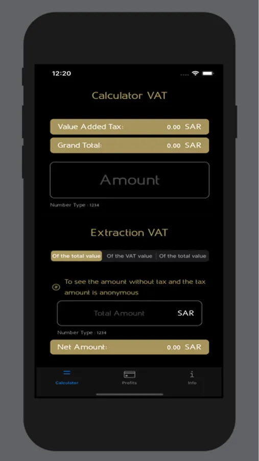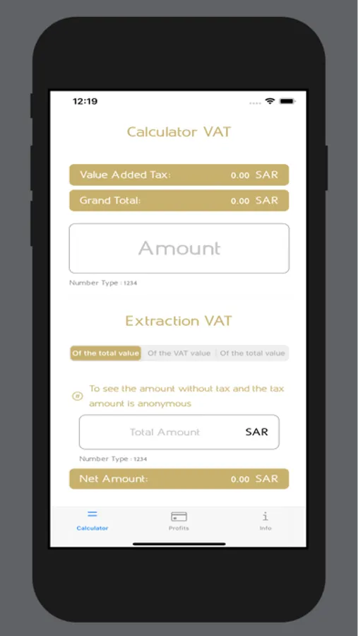 An application that contains a percentage calculator and also a value-added tax calculator according to the value entered by the user and also a calculator to calculate profits and add tax to it