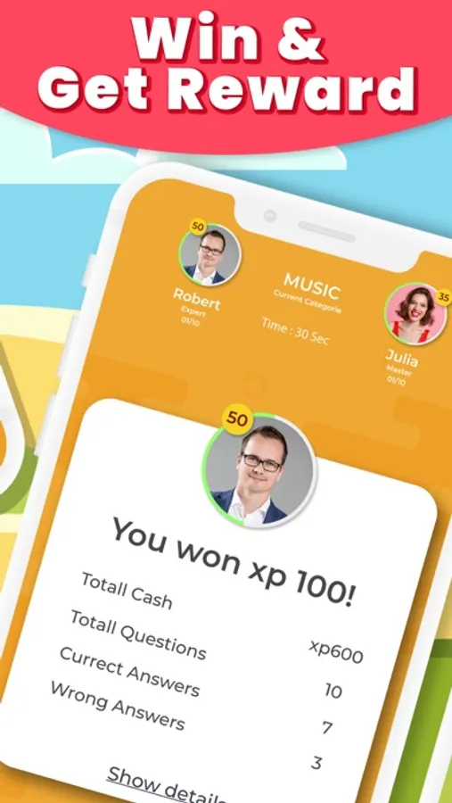 In single mode, the app will scan the active players and pick one of them that matches your selected category. Once the game starts, you will be given 10 questions, and you have 10 seconds to answer each question. The player with more correct answers will win the trivia quiz game and earn 100 xp.