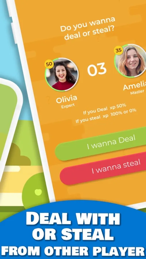Are you tired of playing in single-mode against the server? Well, we heard you! Burgeon your excitement as this Trivia Go app will enable you to play against players from all over the globe. You can also team up with your friend and play against the opponents to get more entertainment in the deal/steal mode.