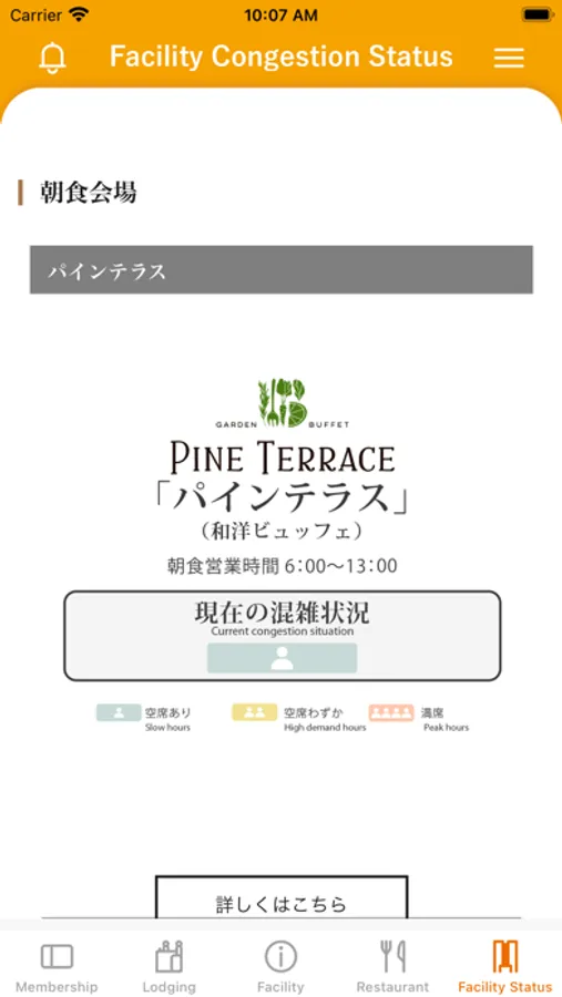 You can check the congestion status of each facility within the Sheraton Grande Ocean Resort, such as restaurants, hot springs, and pools, making it possible to avoid crowds when using the facilities.