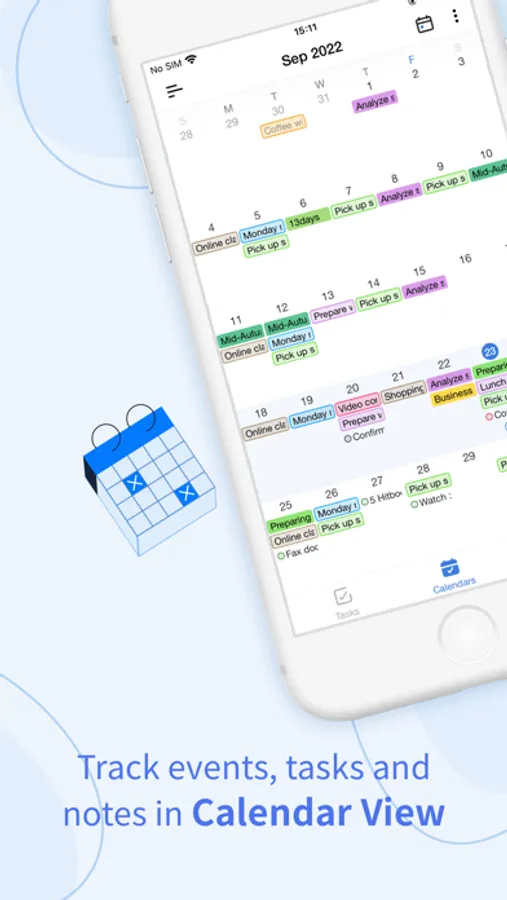 - Month view provides an intuitive way to view tasks and notes of the day.