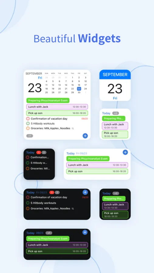 - Quickly add tasks, events, and notes of the day by long-pressing on the calendar.