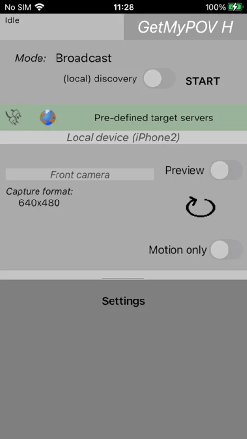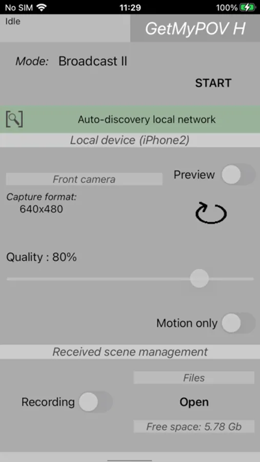 * the broadcasting of the video streaming, generated by the local camera session, to several devices running GetMyPOV F/C, at the same time
