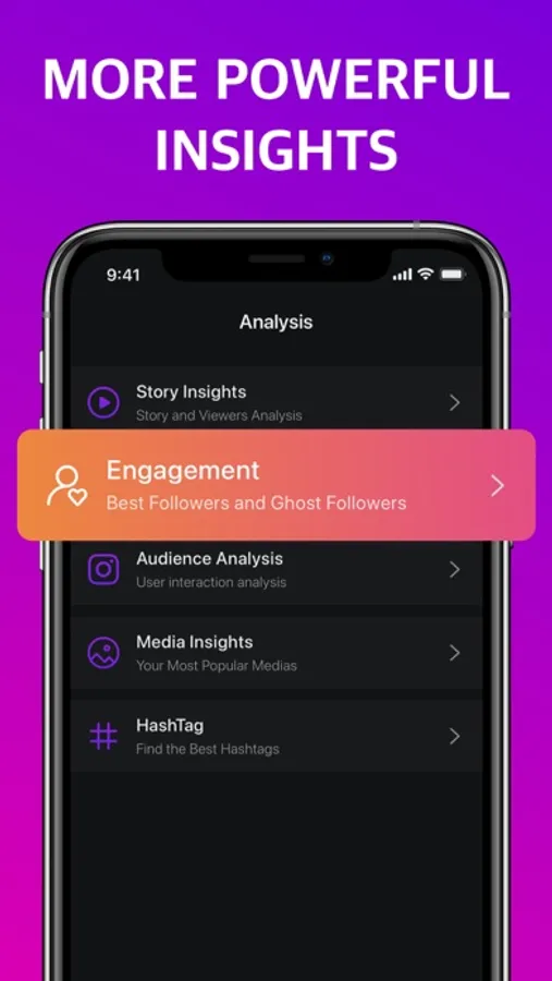 Get all the analysis data with one click, learn your followers and unfollowers data, analyze the popularity and influence of your personal account. Find the relevant hashtag to make your posts more attractive. Get deep insights and complete report about your profiles.