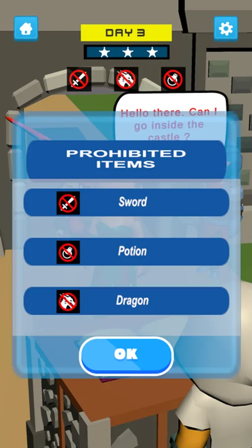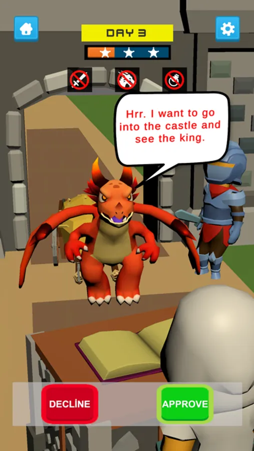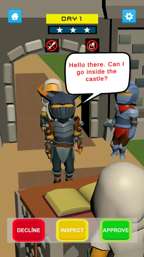 A simulation game where you control who enters the castle and decide who can enter and who cannot.