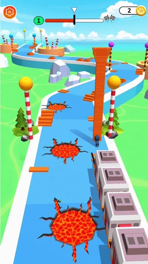 The race is on, be fast and save the train from derailing or falling into the pits. Construct rail tracks while running to help avoid train from de rail. Avoid hurdles in your way to keep on moving smoothly and fast.