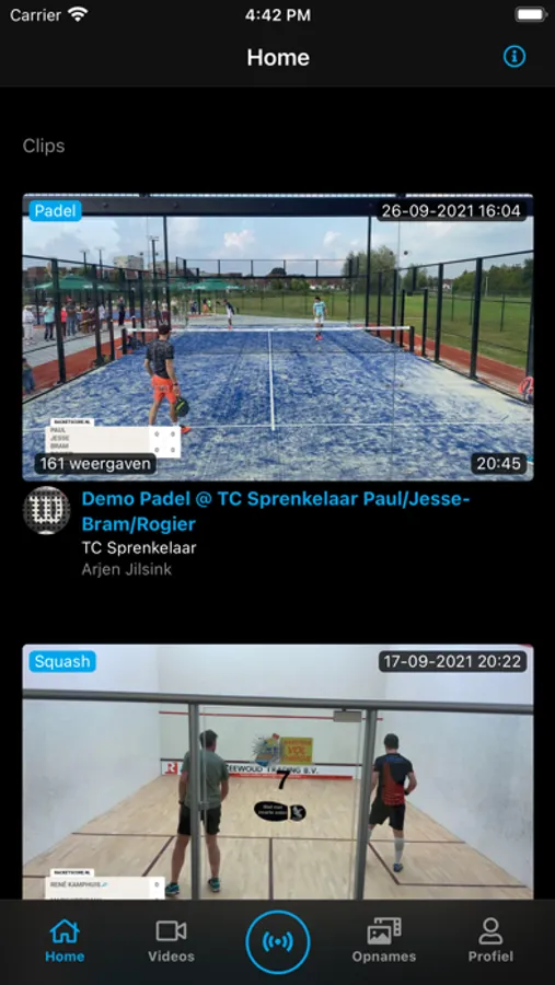 Camera systeem voor racketsporten zoals: tennis, squash, badminton, tafeltennis, en padel.