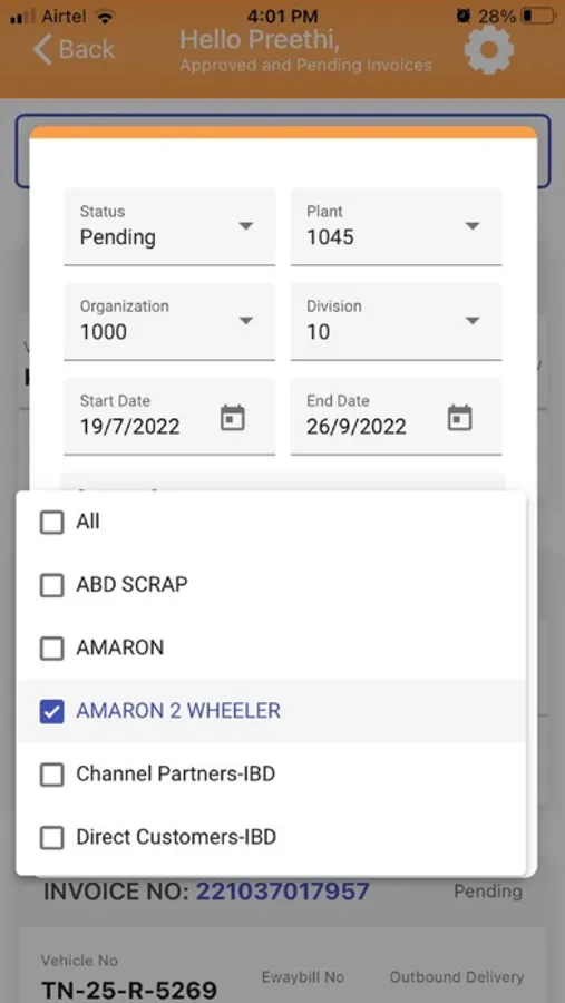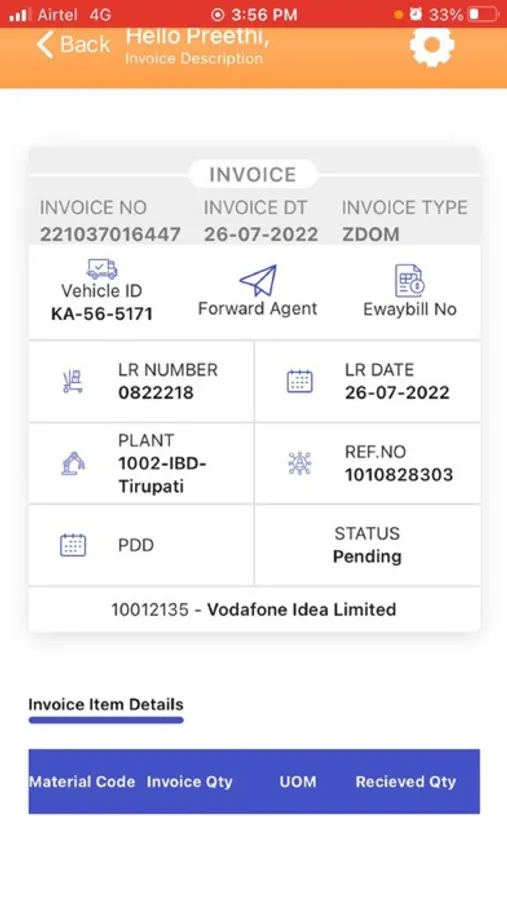 Amararaja POD Confirmation is an application to track the status of the material that has been ordered by customers.