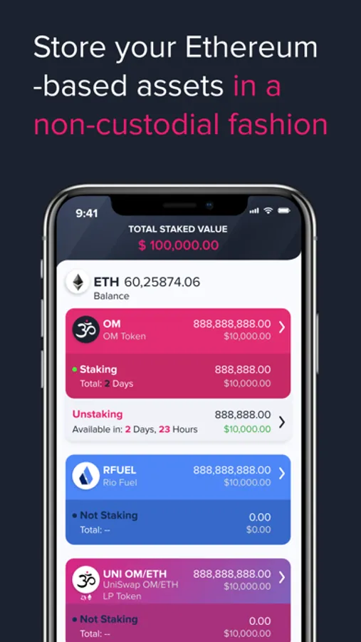 MANTRA Wallet by MANTRA DAO puts innovative DeFi services in the palm of your hand in a sleek and easy-to-use interface. HODL, send, receive, and stake your ERC-20 assets directly on the app in a completely noncustodial and secure manner so you always have control of your crypto assets.