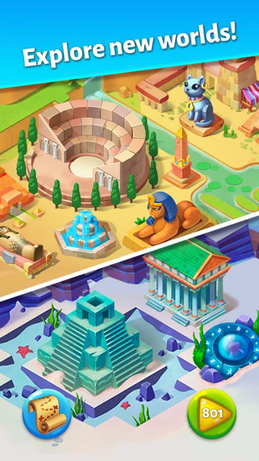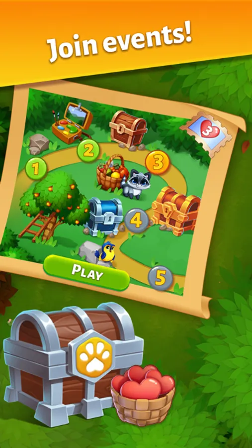 To restore the destroyed edge and the forest world, you need to re-erect all the buildings and decorations and explore them. Complete speсial Match-3 levels to increase the reputation of the world!