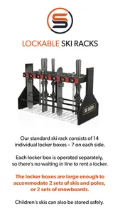 • One locker box holds 2 pairs of skis and poles or 2 snowboards.