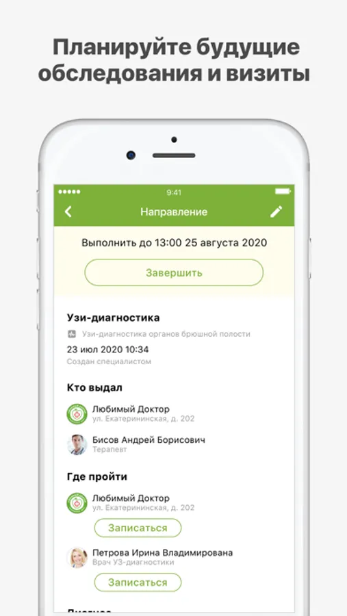 – Просматривайте план лечения, свой или членов вашей семьи;