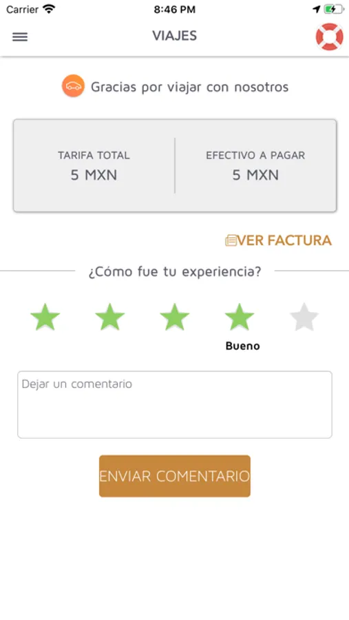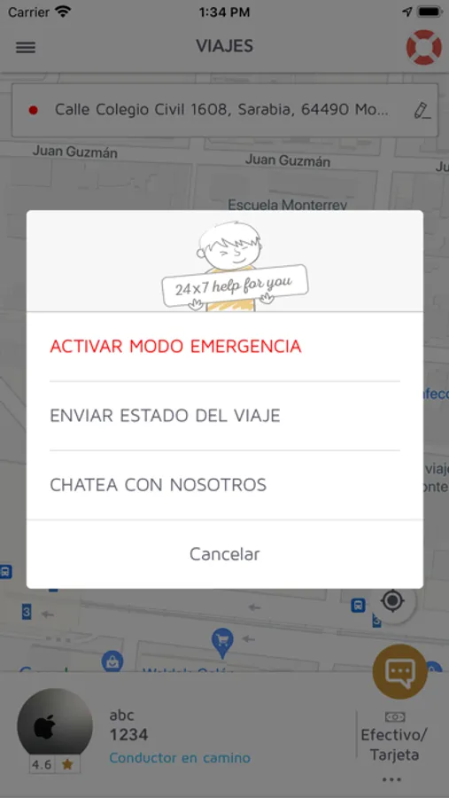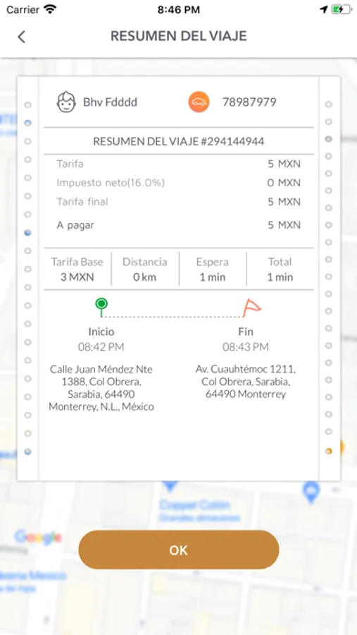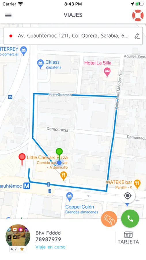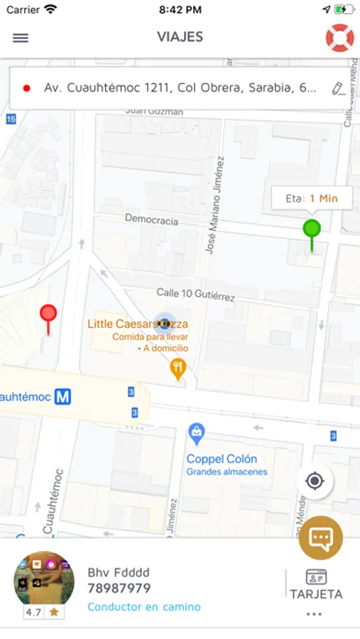 2.- Cálculo de tarifa estimada antes de iniciar el viaje