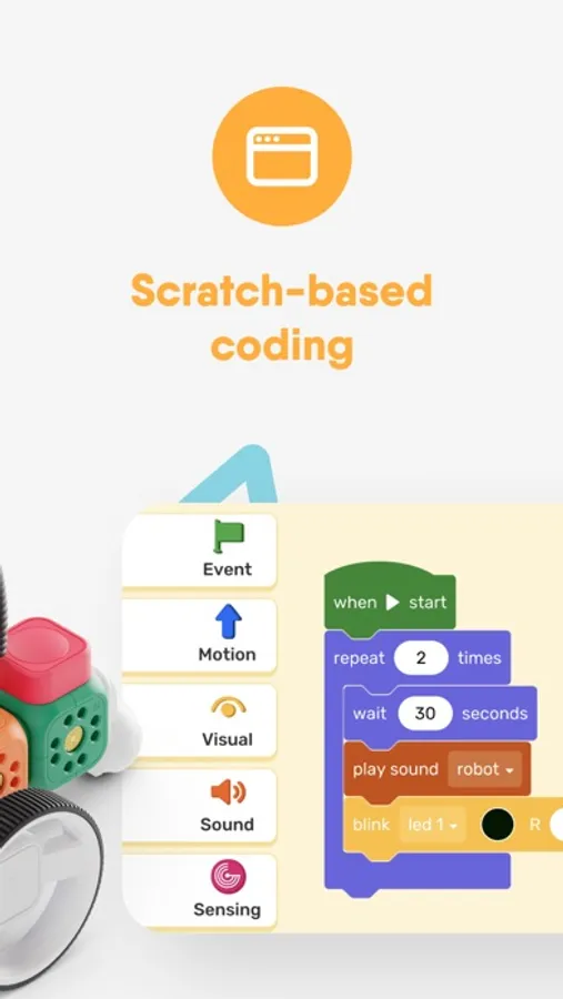 ‘Blockly’ is the most advanced programming level, based on the Scratch interface. The block-based programming environment allows learning complex concepts like Variables, Functions, Operators, and Input-output mapping.